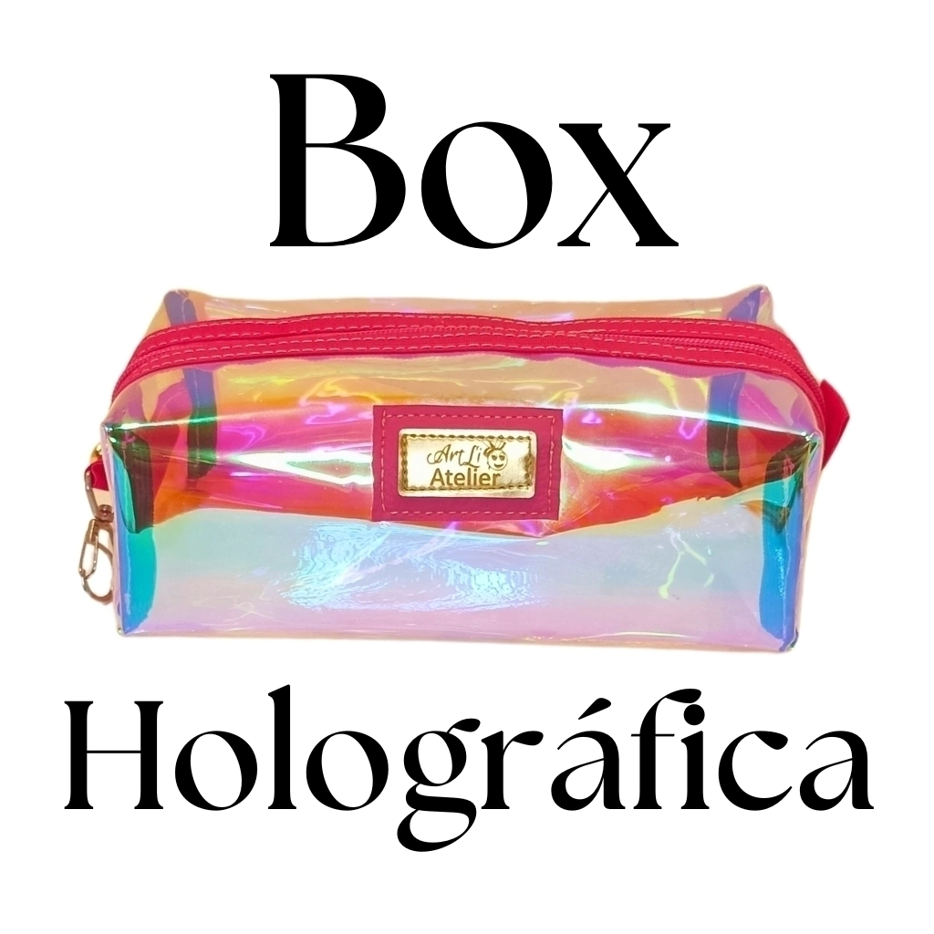 Necessaire box holográfica. Transparente, você visualiza tudo o que tem nela antes mesmo de abrir.